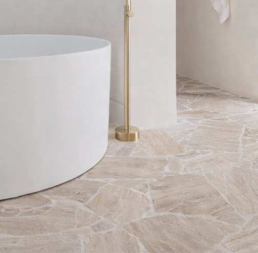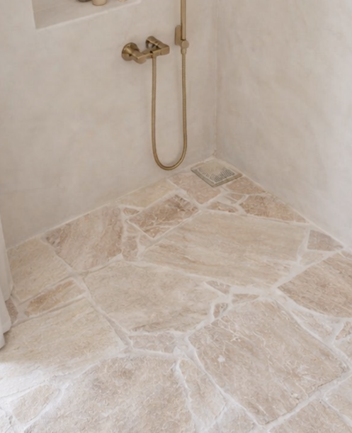 O Travertino Romano Orgânico é um revestimento em pedra natural que valoriza a estética orgânica e a autenticidade dos materiais naturais na arquitetura. Nesse tipo de composição, as peças apresentam formatos e dimensões variadas orgânicas, criando uma paginação irregular que traz movimento visual e um aspecto artesanal ao projeto. As tonalidades suaves e os veios característicos do travertino romano reforçam a elegância atemporal da pedra, enquanto a paginação orgânica cria superfícies únicas e cheias de personalidade. Muito utilizado em projetos de arquitetura e design de interiores, esse tipo de aplicação é ideal para pisos, paredes, painéis e áreas de destaque. O resultado é um revestimento sofisticado, que combina naturalidade, textura e exclusividade em ambientes residenciais ou comerciais.